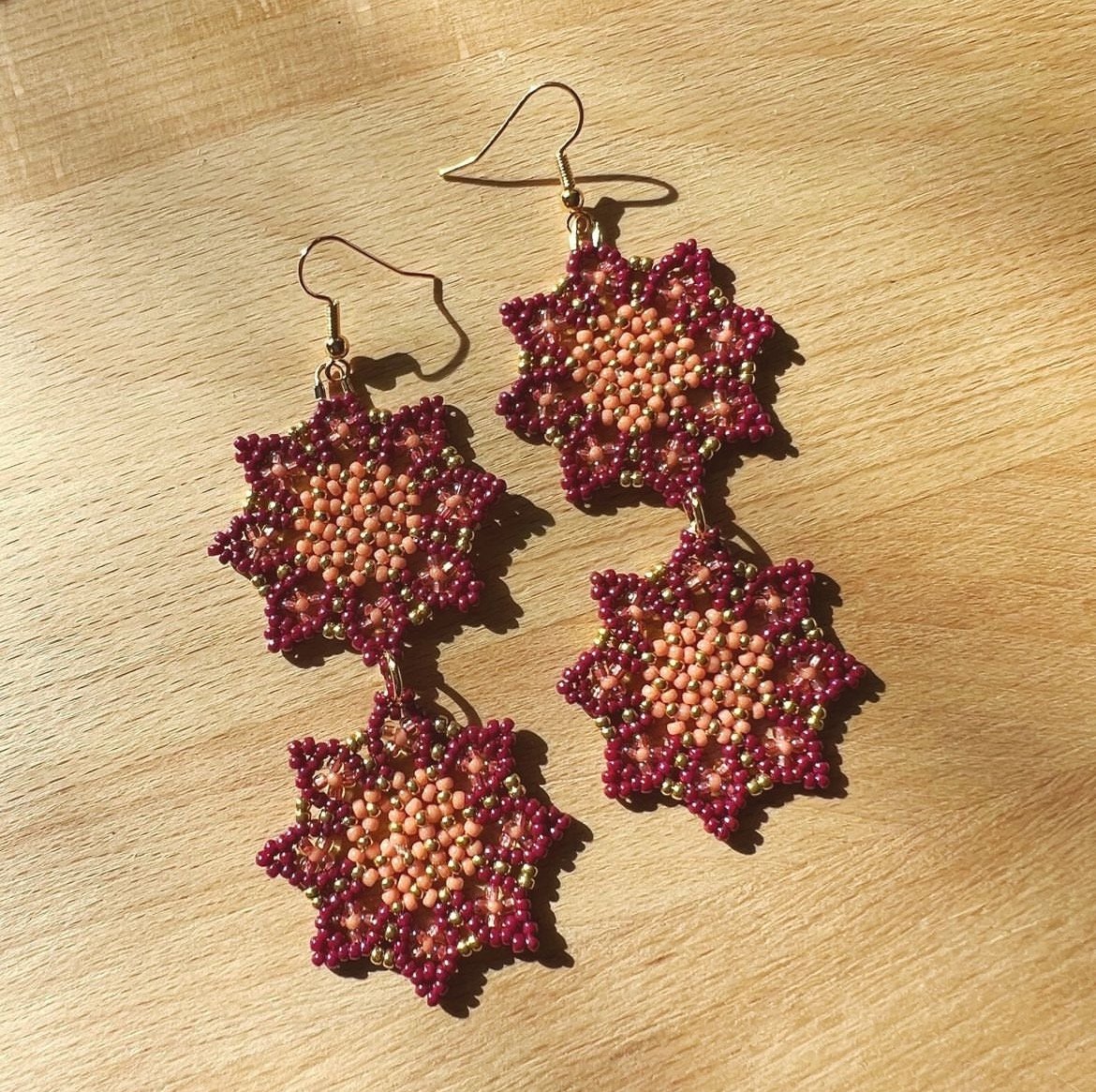 The earring hooks are gold plated brass — can be swapped to gold plated steel hinged clip-on posts for people with unpierced ears (just email me after you purchase or send me a DM!)